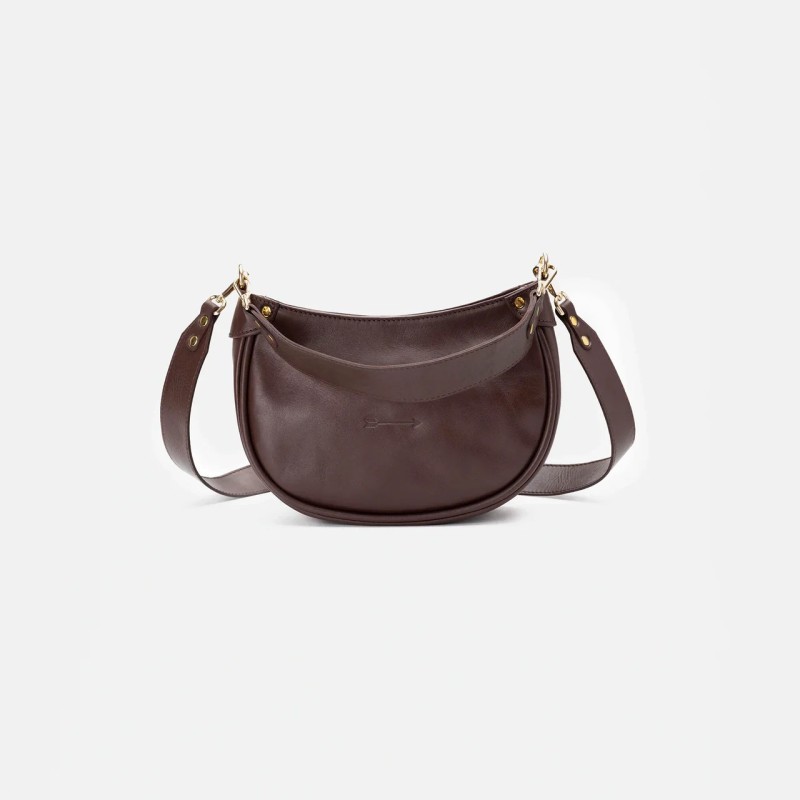 Bolso mediano de piel con forma de luna. Su diseño curvado es perfecto para llevar lo esencial con estilo. El Coney cuenta con dos asas anchas (corta y larga) para poder llevarlo cómodamente tanto al hombro como de bandolera.